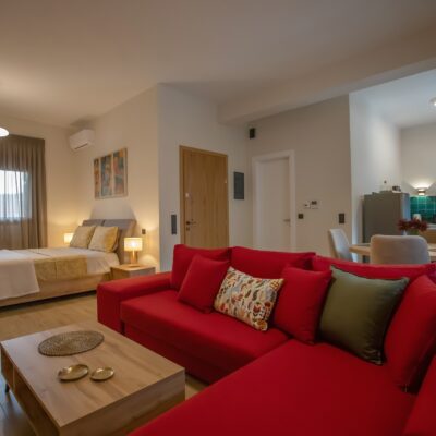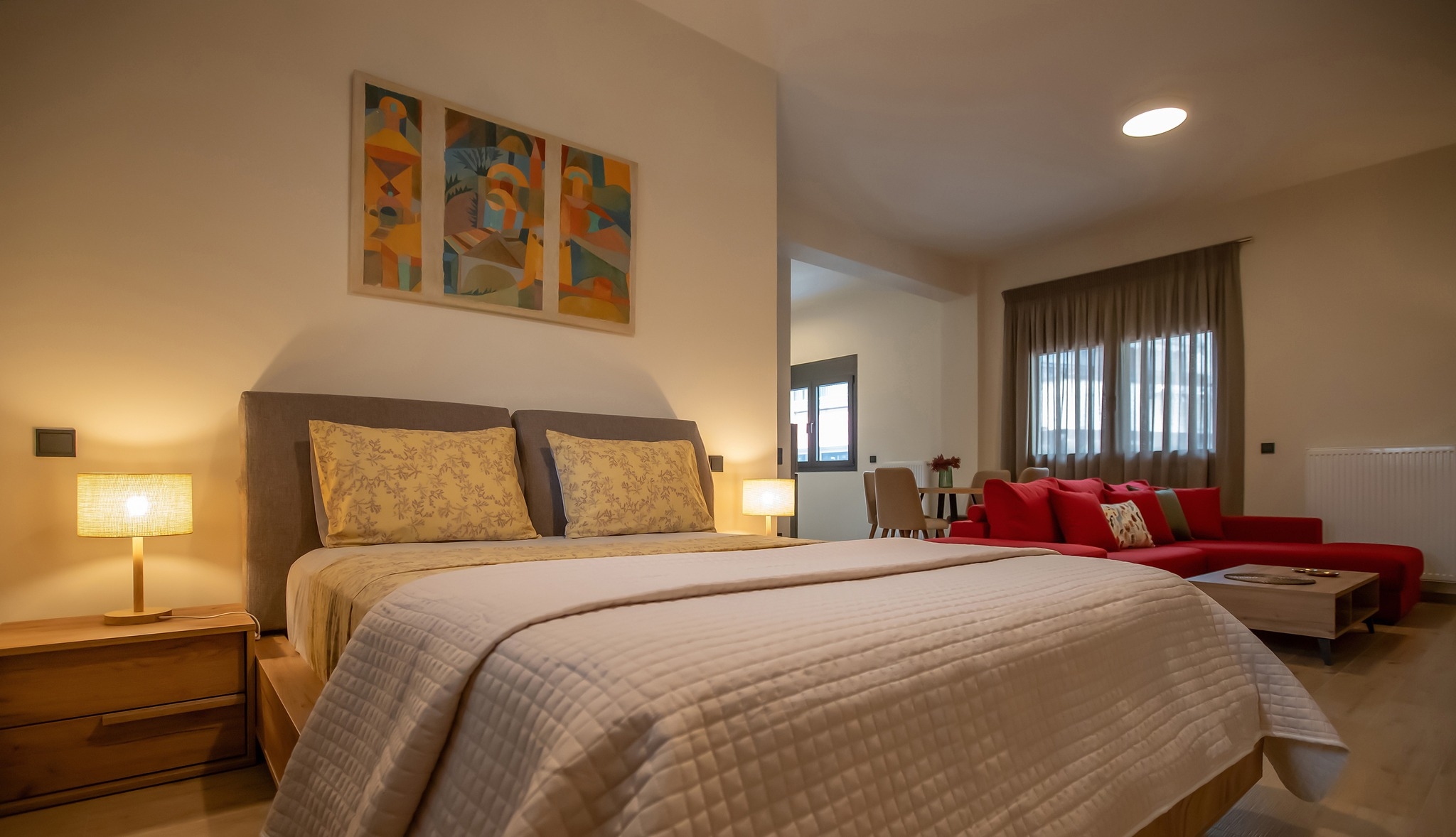Είτε είστε ζευγάρι, μικρή οικογένεια ή φίλοι που ταξιδεύετε μαζί, η Κόκκινη Σουίτα συνδυάζει θαλπωρή, λειτουργικότητα και άνεση για μια αξέχαστη διαμονή.